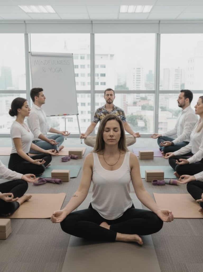 Profissionais com sólida experiência corporativa e certificações em mindfulness, equilíbrio emocional e pausas conscientes.